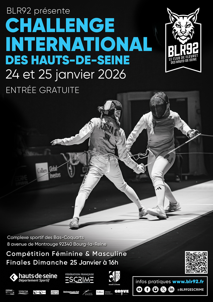 BLR92, le club de fleuret soutenu par le Département des Hauts-de-Seine, vous donne rendez-vous les 24 et 25 janvier 2026 pour la 9ème édition du Challenge International des Hauts-de-Seine.