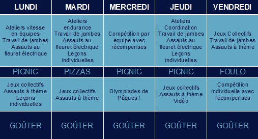 Prévoir une tenue de sport en plus de la tenue d’escrime.